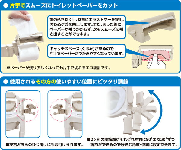 ・片手でスムーズにトイレットペーパーをカット。