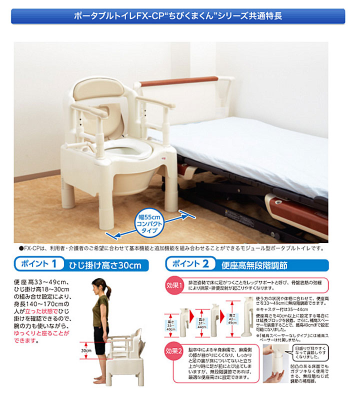 ・お手入れラクラク、安定感バツグンの樹脂製ポータブルトイレ。