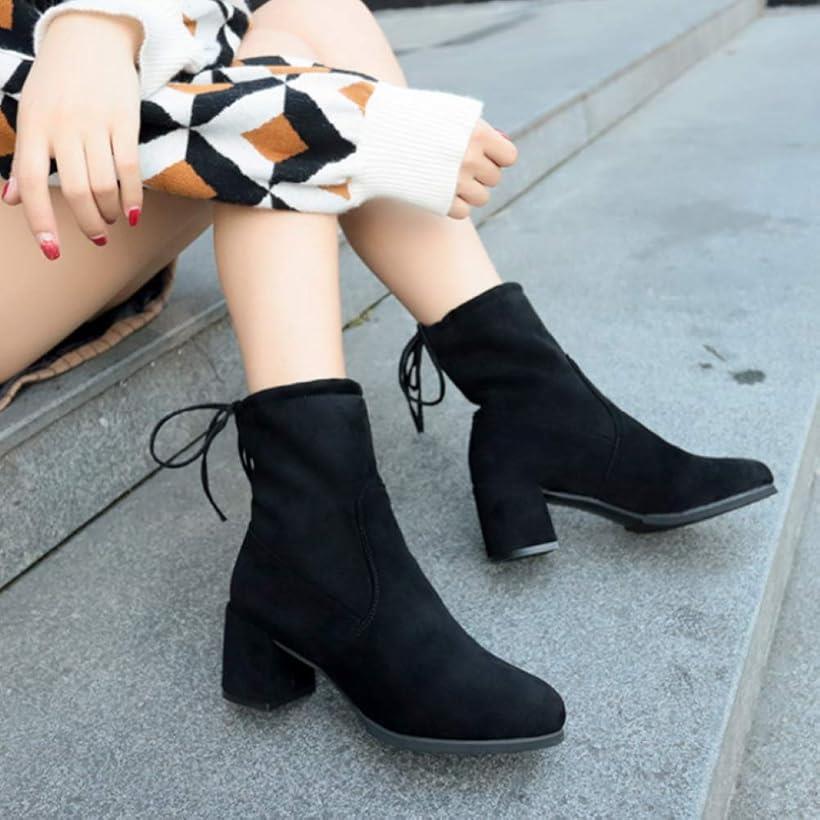 ストレッチブーツショートレディーススエード太ヒール黒ソックスブーツヒール6cm履き回ししやすいショート丈と肌触りの良い柔らかく伸縮性のあるストレッチスエードをしたフィット感抜群のストレッチショートブーツです。