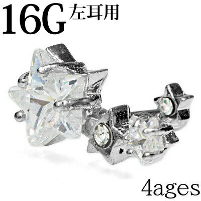 ボディピアス 16G ステンレス CZクラスターストレートバーベル(左耳用) / 16ゲージ シルバー ロブ 軟骨 ヘリックス デザインバーベル ジュエル ジェム 星 ボディーピアス モチーフ